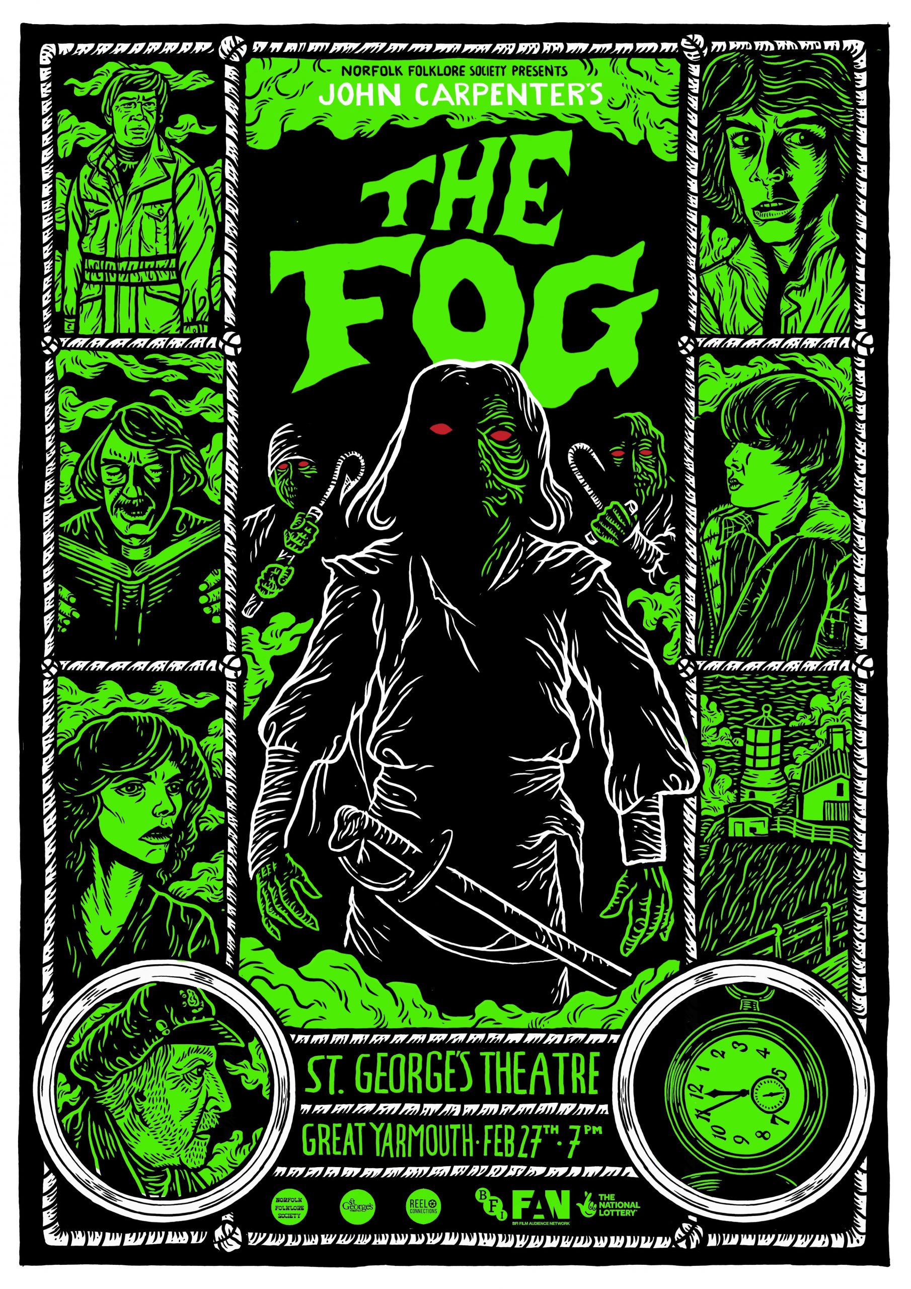 Working with Norfolk Folklore Society, we have been programming a range of events across Norfolk. Bringing these films back to the big screen and contextualising them with introductions that explore local folklore and legend. Titles have included Night of the Demon (1957), Witchfinder General (1968), Cat People (1942), Carnival of Souls (1962) and The Fog (1980). With commissioned artwork by local folkloric artist and zine maker Matt Willis, The Folklore Box, music from DJ Nikki Hirst, and archive film shorts from the East Anglian Film Archive.